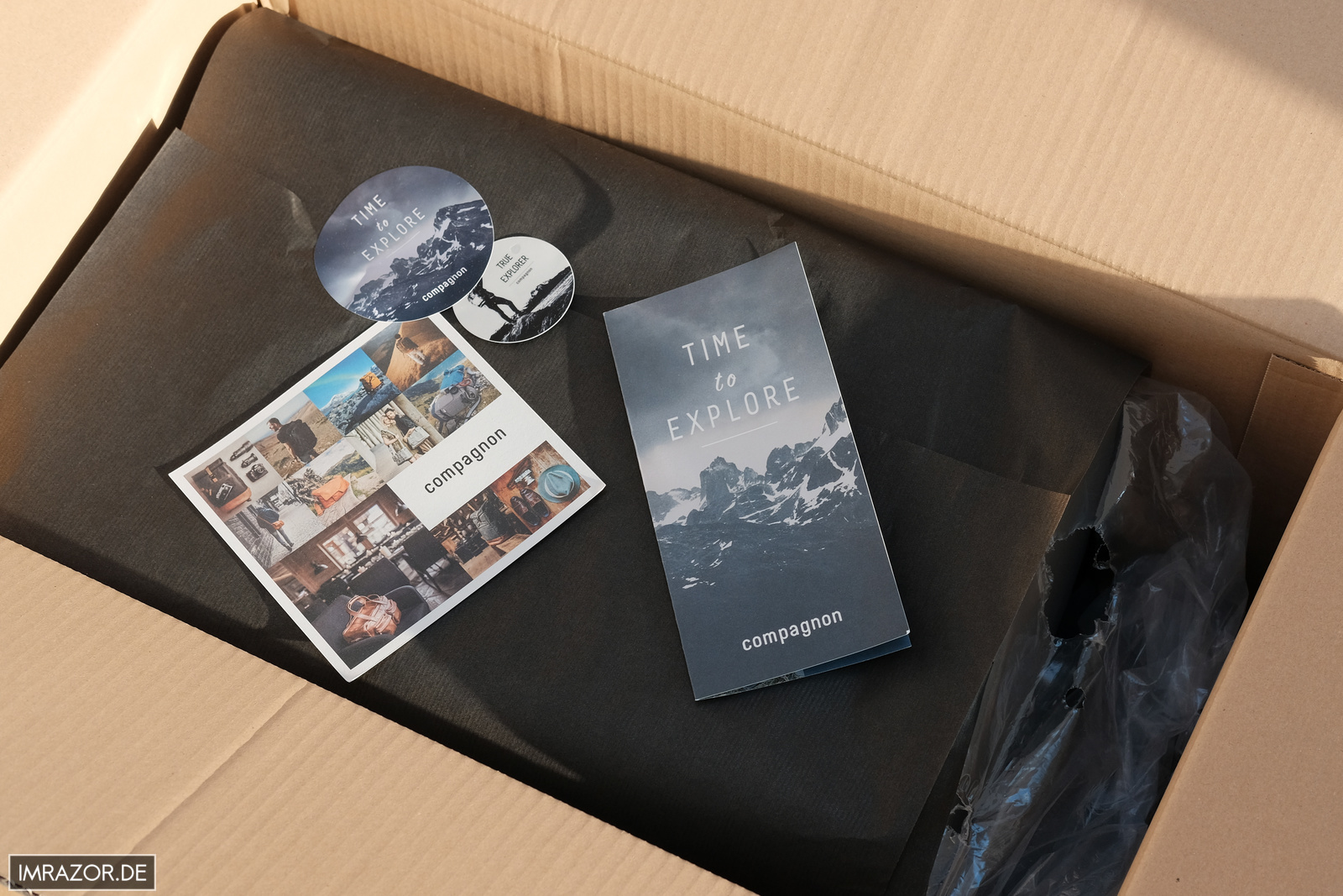 Der Explorer+ wurde in einer großen Schachtel geliefert – stilecht mit der Aufschrift „Made For True Explorers“ – darin in Papier eingeschlagen der Rucksack selbst sowie das Mud-Cover und der Hüftgurt.