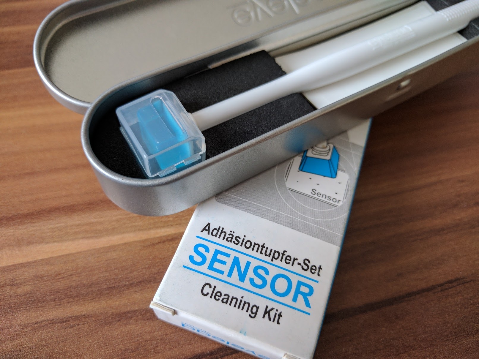 Nassreinigung wollte ich selbst nicht durchführen, selbst wenn das anscheinend gut klappt, war mir die Sache „zu heiß“. Zufällig bin ich durch die „Fotoschnack“-Sendung von Gunther Wegner (gwegner.de) und Patrick Ludolph (neunzehn72.de) auf das Reinigungskit von Eyelead gestoßen und dachte mir, das könnte einen Versuch Wert sein. Wenn es nicht funktioniert, wie gewünscht, kann ich die Kamera immer noch zur Reinigung geben.
