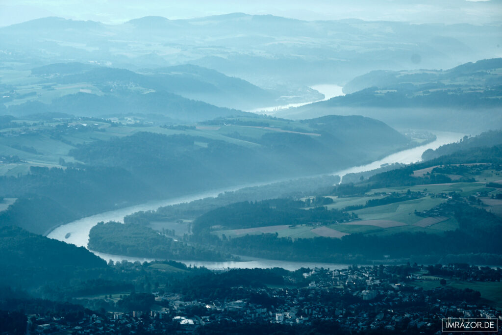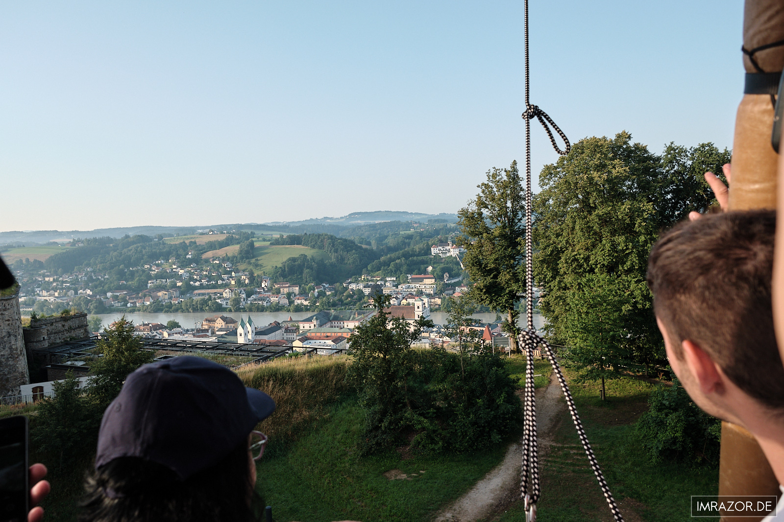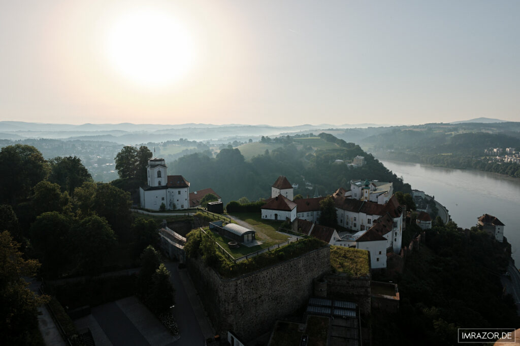 Sonnenaufgang und Sonnenuntergang – könnte einem aus fotografischer Sicht doch nichts besseres passieren, oder? Kurzerhand entschloss ich mich für den Morgentermin an einem Samstag, Treffpunkt 06:00 Uhr am Thingplatz direkt neben der Veste Oberhaus. Dieser Platz liegt auf dem Rücken des Georgsbergs und ist damit ein idealer Startplatz hoch über der Donau (und der Ilz). Und ich hatte Glück: Das Wetter war perfekt, die Windrichtung wurde für Nordwest vorhergesagt, was eine interessante Fahrtrichtung versprach: Viele der Ballons, die man sieht, fahren eher donauabwärts Richtung Österreich. So ist jede Ballonfahrt mit der Überraschung verbunden, wo einem der Wind hinbringen mag, denn ein Ballon lässt sich nur bedingt steuern. Über die Windrichtungen in verschiedenen Höhen lässt sich die Gesamtroute durch den Piloten zwar grob steuern, aber am Ende ist man den Launen der Natur ausgeliefert.