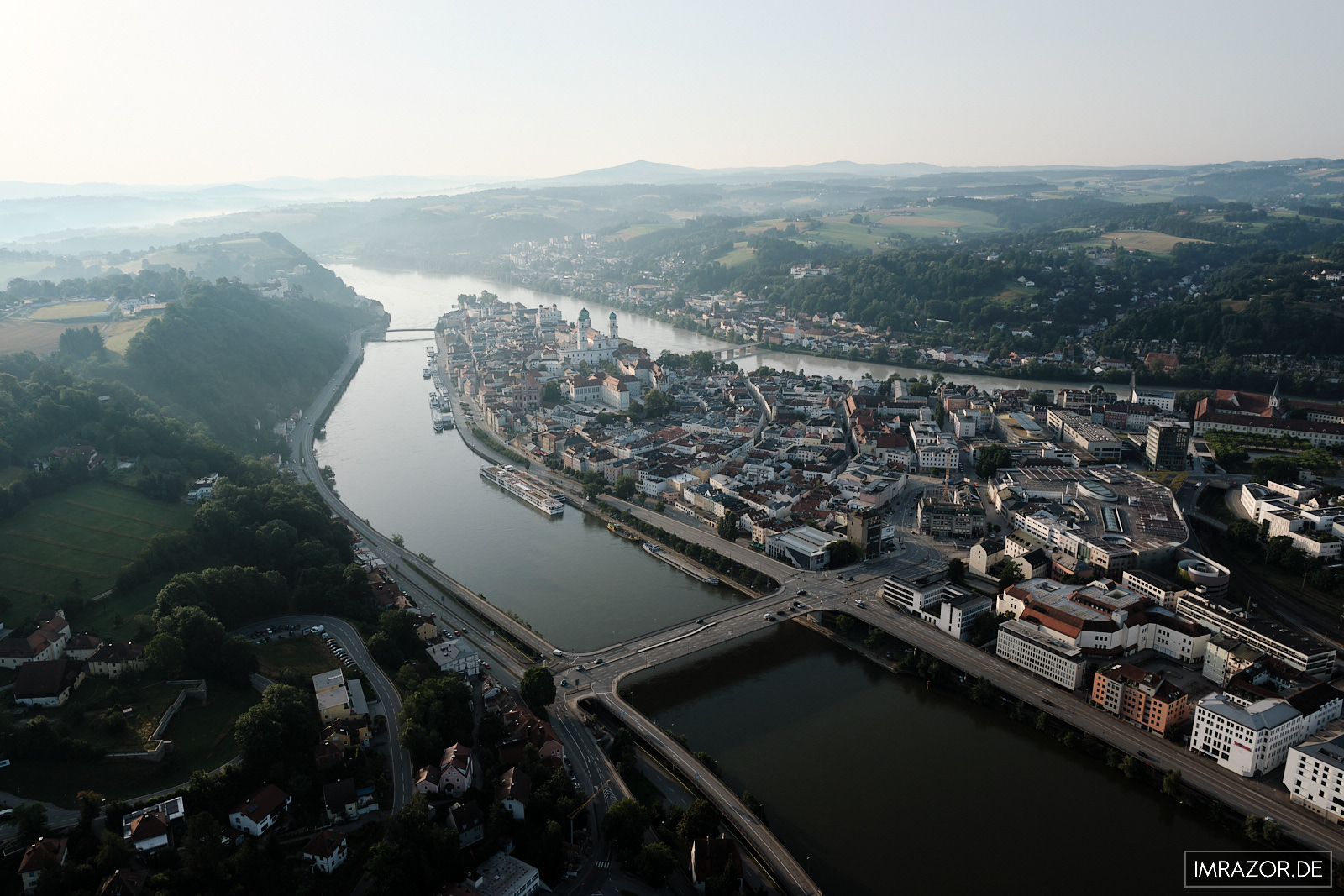 Als Passauer ist man es gewöhnt, dass bei gutem Wetter immer mal wieder Heißluftballons mehr oder weniger hoch über einen hinwegziehen. V.a., aber nicht nur, für Kinder ist es immer wieder faszinierend, wenn diese fast lautlosen Luftgefährte in die Ferne entschwinden. Wieso es ausgerechnet in und um Passau mehrere Unternehmen gibt, die Ballonfahrten anbieten, liegt wohl an der besonderen geographischen Lage und den reizvollen Perspektiven, die sich aus der Vogelperspektive bieten: Die Stadt Passau liegt eingebettet in hügeliger Landschaft direkt am Zusammenfluss der drei Flüsse Donau, Inn und Ilz. Daher auch der wohlklingende Beiname Dreiflüssestadt.