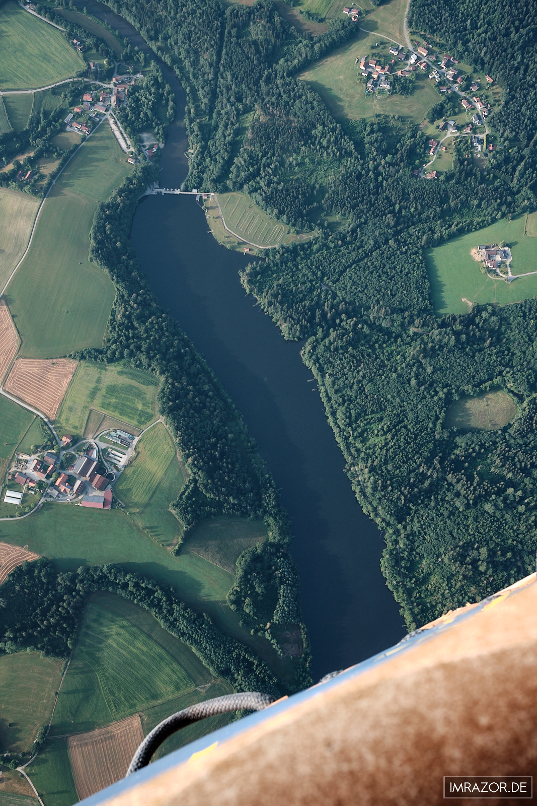 Wir überqueren die Ilz und den Stausee Oberilzmühle. Wir sehen die Ilzschleife nahe Hals bei Passau und in weiter Ferne das Donautal über dem noch leichter Nebel hängt. Häuser, Autos und Bäume wirken wir Spielzeug. Auch wenn man dies aus dem Flugzeug kennt, ist es doch anders: Man blickt durch keine Scheibe, sondern hat direkte Sicht in alle Richtungen. Nach etwa eineinhalb Stunden leitet der Pilot die Landung ein bzw. sucht nach einem geeigneten Fleck, um den Ballon und die Passagiere sicher zurück zum Boden zu bringen. Je später der Vormittag und je wärmer die Temperaturen, desto höher ist die Wahrscheinlichkeit von Luftströmungen in Bodennähe: Das kann eine Landung gefährlich machen, da der Korb dann mehrmals aufsetzt, bevor der Ballon zum stehen kommt. Wir hatten jedoch Glück, das Wetter und der Wind waren so optimal, dass unser Pilot gezielt nach einem sanftem „Landeanflug“ über eine Wiese, den Korb direkt auf eine kleine Seitenstraße setzen konnte.