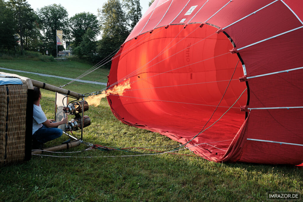 Vor zwei Jahren wurde mir ganz unerwartet ein Gutschein von Bayernhimmel für eine solche Ballonfahrt zum Geburtstag geschenkt. Leider lag dieser Gutschein unangetastet die letzten beiden Jahre in der Schublade, irgendwie konnte ich mich nicht aufraffen, die Ballonfahrt anzugreifen. Bis Mitte Juni 2024, als mir der Gutschein wieder unterkam und ich mich kurzerhand für die nächste Fahrt einplanen lies. Ja, Planung ist bei Ballonfahrten ein wichtiger Punkt: Fahrten finden aufgrund der Thermik nur frühmorgens (kurz nach Sonnenaufgang) und abends (kurz vor Sonnenuntergang) statt und das auch nur, wenn das Wetter mitspielt: Wind, Regen, Gewitter – alles Dinge, die man beim Ballonfahren v.a. aus Sicherheitsgründen nicht haben möchte.