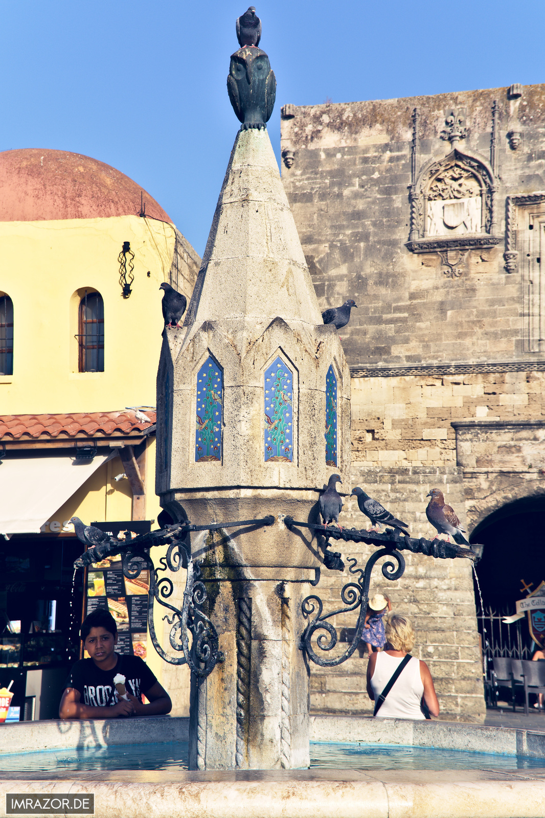 Vom zentralen Hippokrates Platz kann man dann die wunderschöne Altstadt erkunden. Ritterstraße, Großmeisterpalast etc. Die wichtigsten Sehenswürdigkeiten findet man in jedem Reiseführer. Ein Tipp: Einfach mal eine der schmalen Seitengassen nutzen und sich überraschen lassen, wo man rauskommt. Wirklich verlaufen kann man sich dadurch nicht, aber man sieht Dinge abseits der (Haupt-)Toursitenpfade. Viele gemütliche Restaurant/Tavernen und Cafés laden zudem zum Verweilen ein.