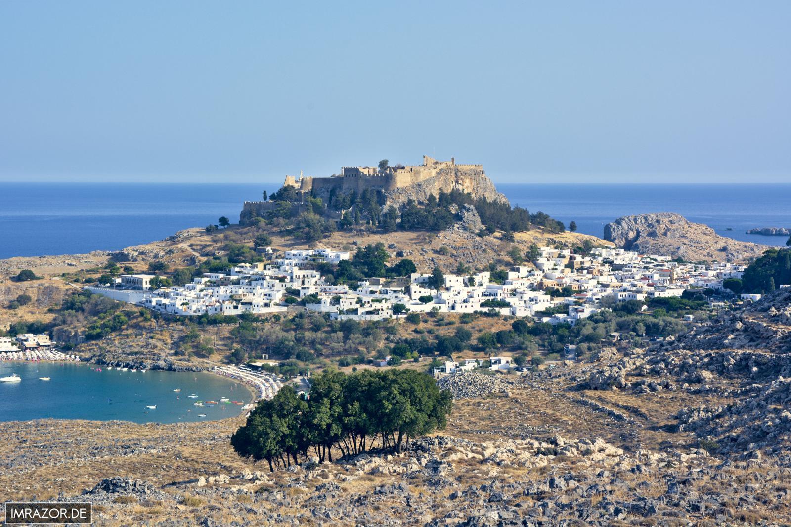 Das zweite Must-See neben Rhodos Stadt ist sicher Lindos. Eine der ältesten Städte/Siedlungen von Rhodos besticht Lindos durch ihre wunderschöne Altstadt mit den Kapitänshäusern und weißen Würfelbauten. Darüber thront hoch oben die Akropolis, dahinter die markante Paulus Bucht.