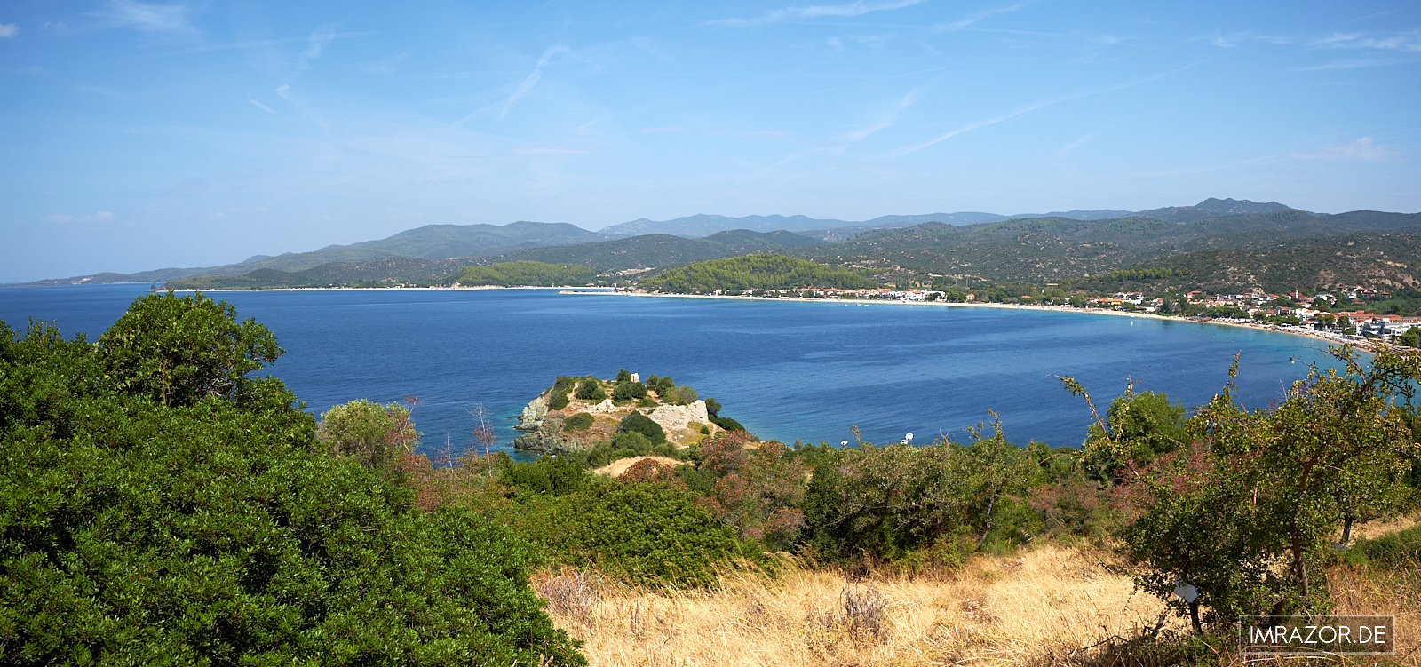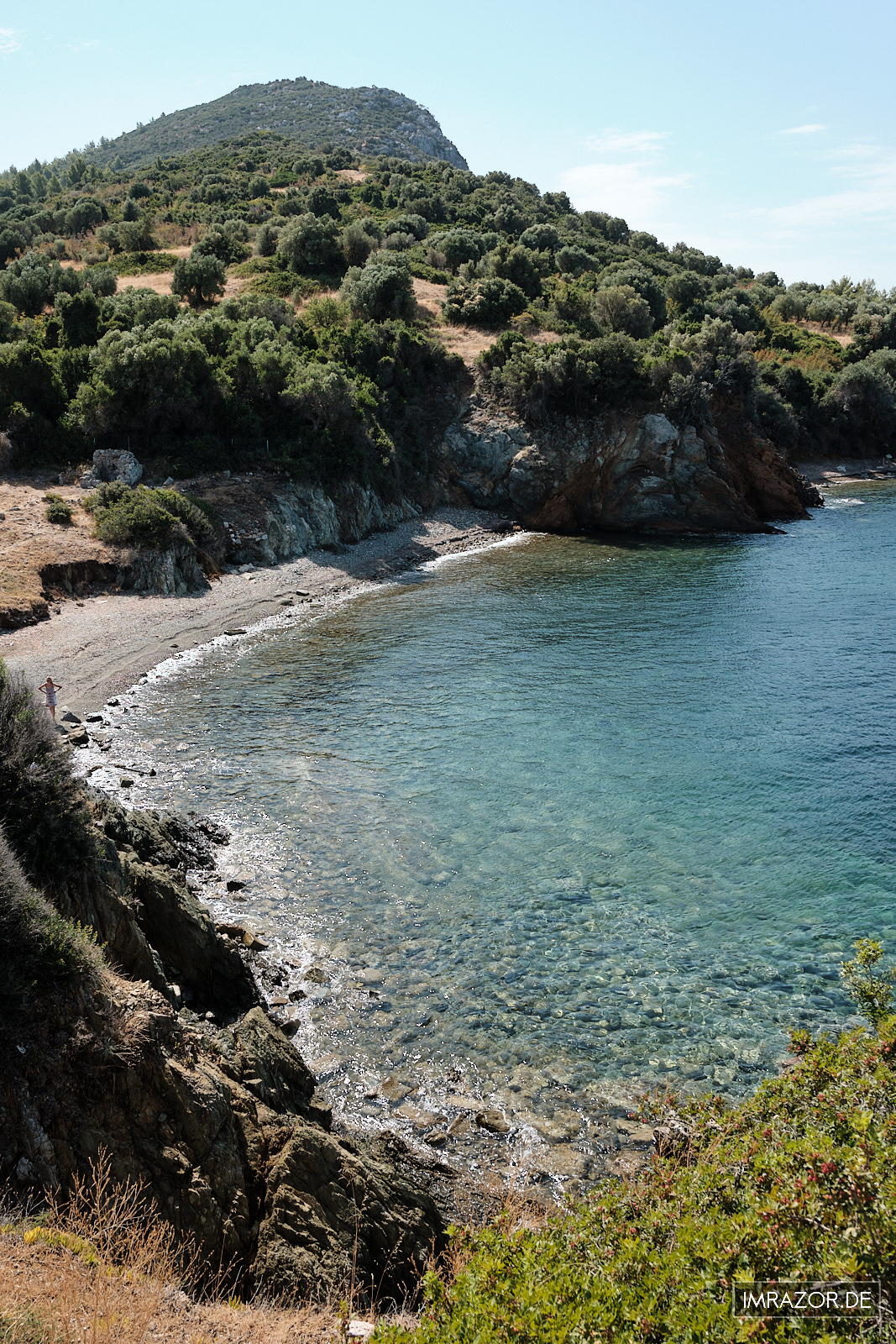 Über die Küstenstraße lässt sich Sithonia mit dem Mietwagen sehr gut umrunden und erkunden. Genau dies war bei für einen Tagesausflug nach Erhalt des Mietwagens unser Vorhaben – immer mit dem Wunsch den Touristenmassen zu entfliehen. Und ja, je weiter man Richtung Süden fährt, desto ruhiger wird es. Aber die vielfach propagierte Einsamkeit und Naturbelassenheit Sithonias konnten wir leider auch hier nicht finden.