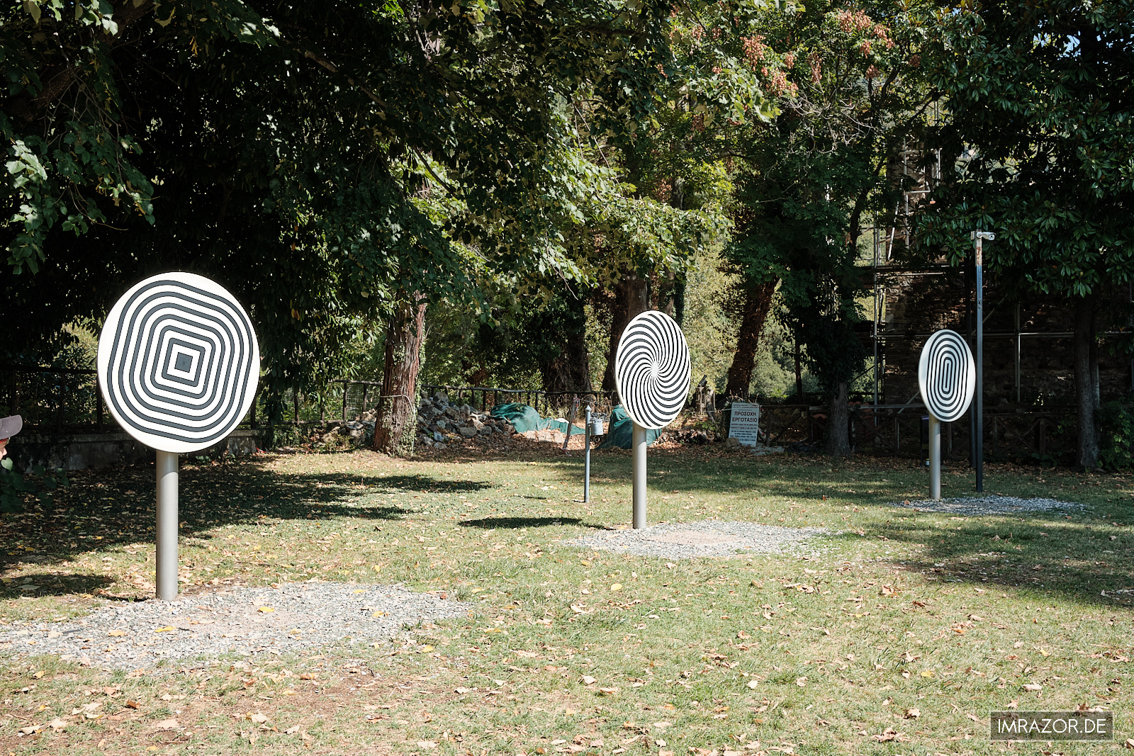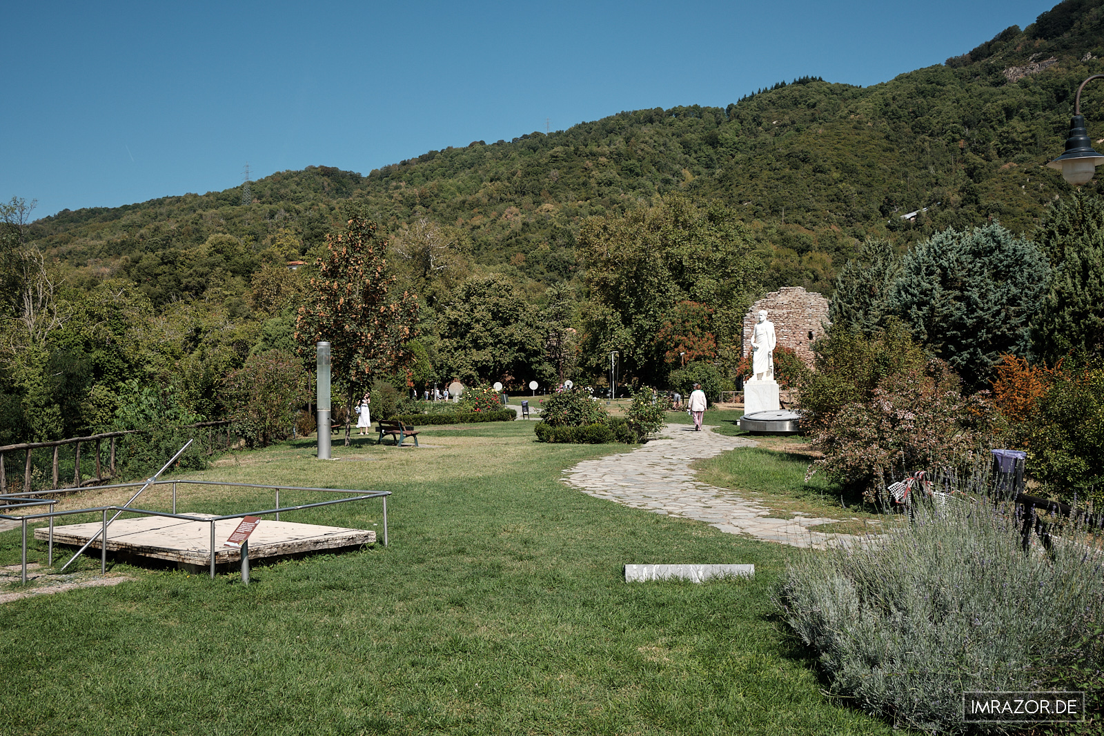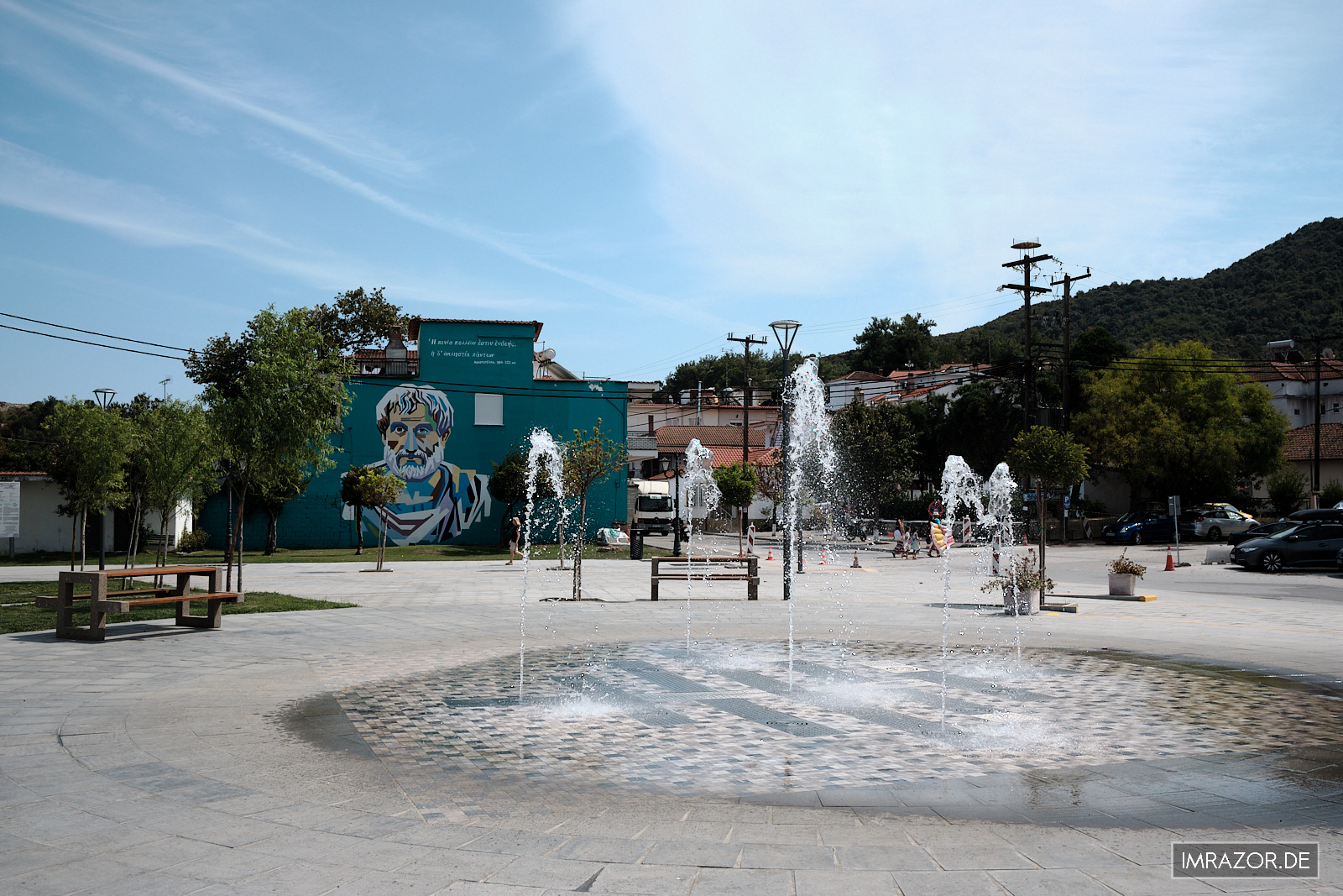 An einem weiteren Tag erkundeten wir die ländlichere Seite der Chalkidiki. Unser erster Stopp war der Aristoteles Park bei Stágeira, dem Geburtsort des berühmten Philosophen. Der Park ist ein interaktives Freiluftmuseum, das Wissenschaft, Philosophie und Natur miteinander verbindet – von physikalischen Modellen bis zu geometrischen Experimenten kann man hier Aristoteles’ Ideen hautnah erleben. Auch für Kinder gibt es hier viel zu entdecken. Wir hatten den Park fast für uns allein, eine willkommene Abwechslung zum Trubel von Nikiti.