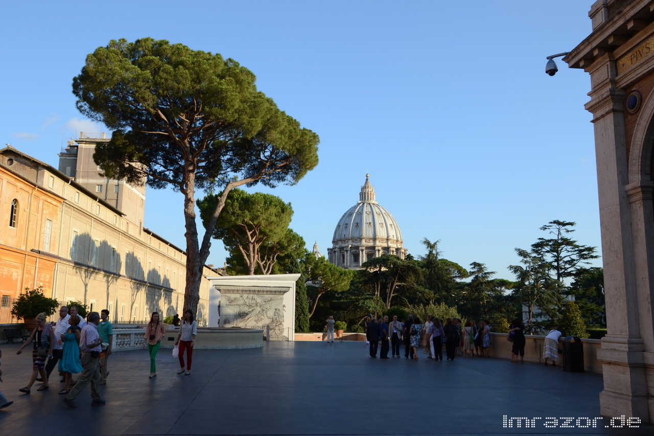 Nach einer kurzen Pause auf dem Piazza Venezia bzw. auf dem Platz unterhalb des Kapitols beim bekannten Marmordenkmal für Vittorio Emanuele II gingen wir auf die Suche nach der Haltestelle für den richtigen Bus zum Vatikan. Denn als nächstes Stand die Nachtbesichtigung der Vatikanischen Museen an. Nur Freitags werden werden diese Termine angeboten, zu denen man mit Online-Reservierung Einlass erhält. Die Öffnungszeiten sind dabei von 19:00 Uhr bis 23:00 Uhr und bieten die Möglichkeit mit verhältnismäßig wenig anderen Gästen die prächtigen Museen inklusive der sixtinischen Kapelle zu besichtigen. Buchen kann man die Tickets auf der offiziellen Seite der Museen, bei der man nach der Zahlung mit Kreditkarte ebenfalls eine PDF-Datei mit Code zum Ausdrucken erhält. Die Buchung erfolgt über diese Seite: Vatikanische Museen.