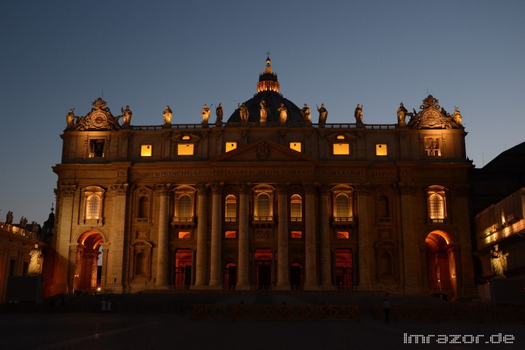 Nachdem wir das Museum spät abends verlassen hatten und wieder zur Bushaltestelle gegangen sind, konnten wir noch den tollen nächtlichen Blick auf den Petersdom werfen. Der Weg zur Haltestelle führt nämlich direkt über den Petersplatz.