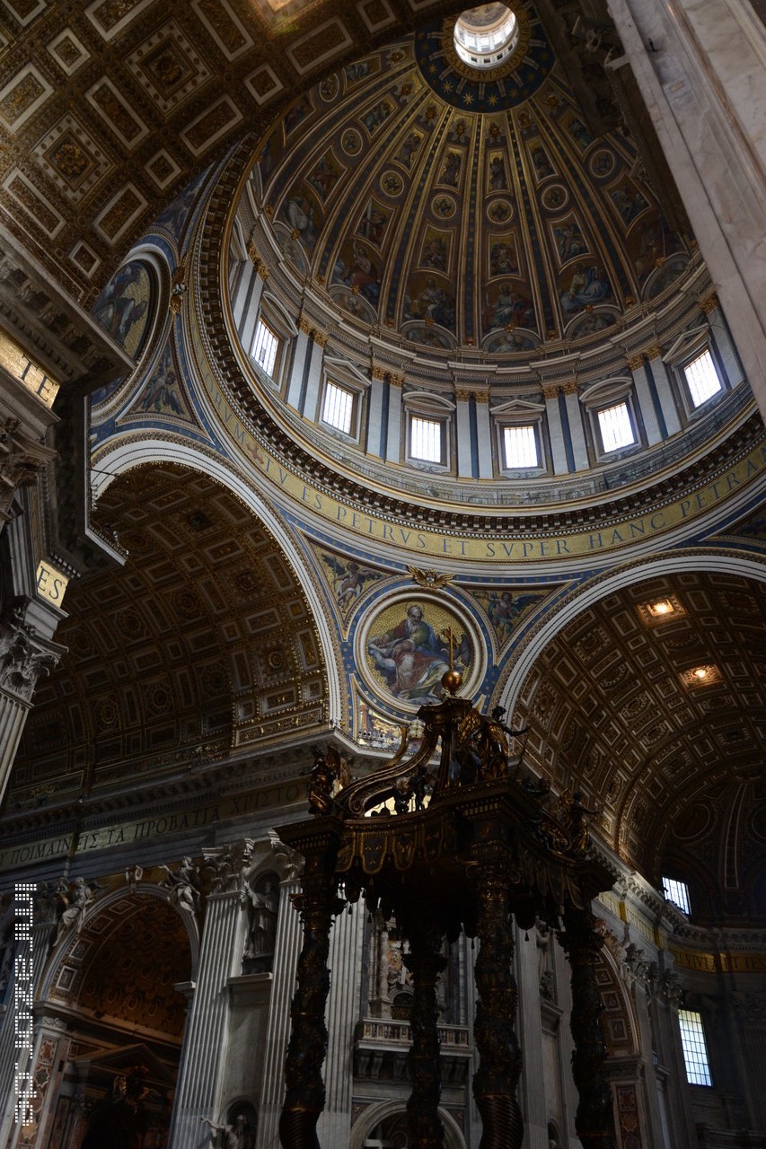 Nach einer nicht allzu langen Wartezeit in der Schlange voller Asiaten ging es durch die Sicherheitskontrolle in den Dom. Keine Frage, das Innere des Petersdoms ist mehr als beeindruckend. Die Ausmaße sind gigantisch, die Verzierungen und Details ebenfalls. Obwohl Besuchermassen hineinströmten wurde der Innenraum nie ganz voll – wohl auch kontrolliert durch die Sicherheitskontrollen.