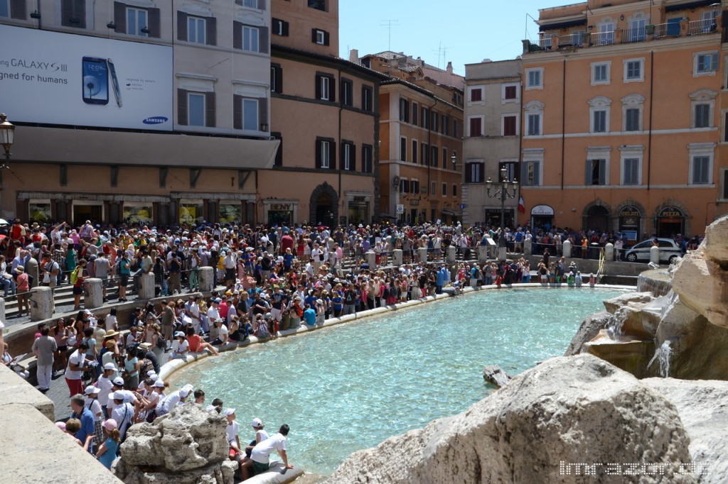 Als nächstes steht das total überfüllte Pantheon auf dem Programm, das zwar beeindruckend ist, jedoch von den enormen Menschenmassen „überflutet“ wurde. Weiter geht es über die Marc-Aurel-Säule zum Fontana di Trevi. Natürlich steht der Trevibrunnen auf dem der Liste der „must-have-seen“-Sehenwürdigkeiten, allerdings ist es schon fast nicht mehr feierlich, wie viele Touris sich um diesen Brunnen scharen und eine Münze hineinwerfen wollen.