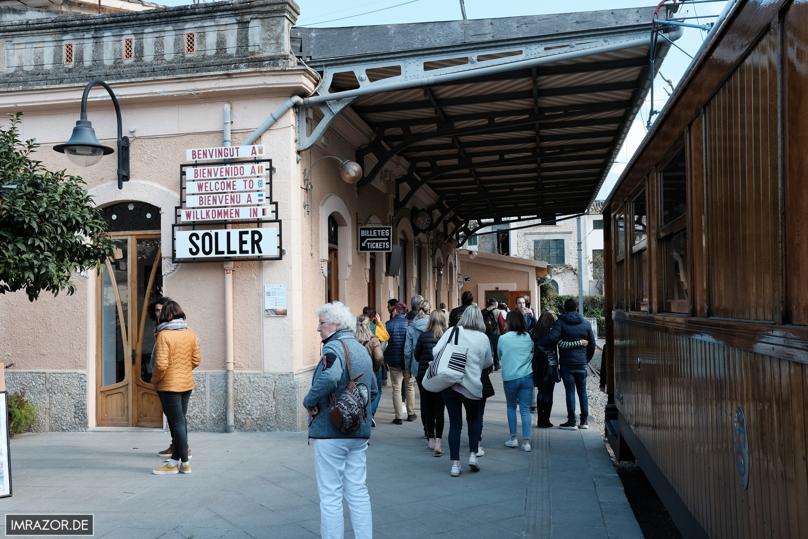 Am nächsten Tag ging es dann erneut nach Palma, dieses mal aber mit dem Mietwagen ins Parkhaus. Unser Ziel war der alte Bahnhof der Ferrocarril de Sóller. Mehrmals täglich fährt der mehr als 100 Jahre alte „rote Blitz“ von Palma durch zahlreiche Tunnel und bergige Landschaft nach Sóller.