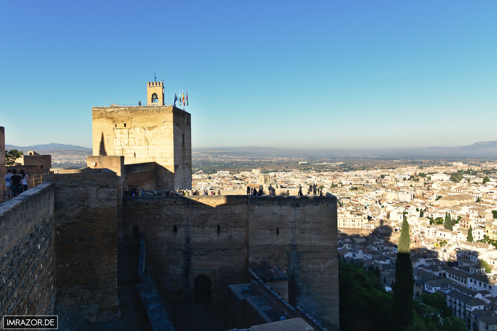 Etwa 100km und eine gute Stunde Fahrzeit muss man von Nerja nach Granada einplanen. Nachdem der touristische Hotspot die Alhambra ist und nur ein begrenztes Kontingent an Personen alle Bereiche (Nasridenpalast war damals auf ca. 7.000 Besucher pro Tag beschränkt) besuchen dürfen, ist frühes aufstehen angesagt.