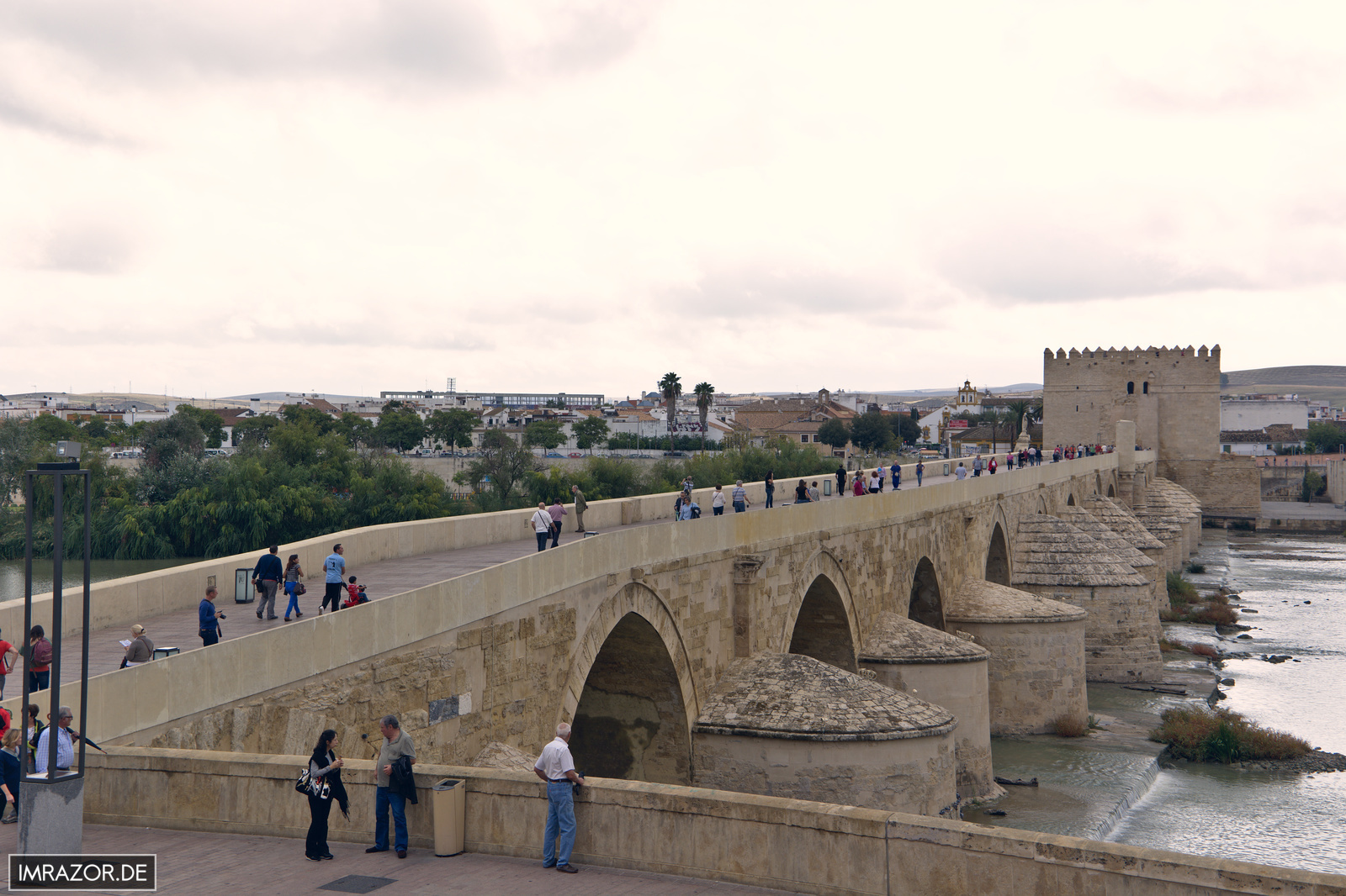 Nach dem Rundgang durch die Mezquita besuchen wir die Puente Romano, die den Fluss Guadalquivir überspannt. Von hier aus sieht man die alte Mühle, am Uferrand und ein eine Ruine im Fluss. Die Brücke wurde von den Römern im Jahr 45 v.Chr. erreichtet und diente auch in Game of Thrones als Kulisse.