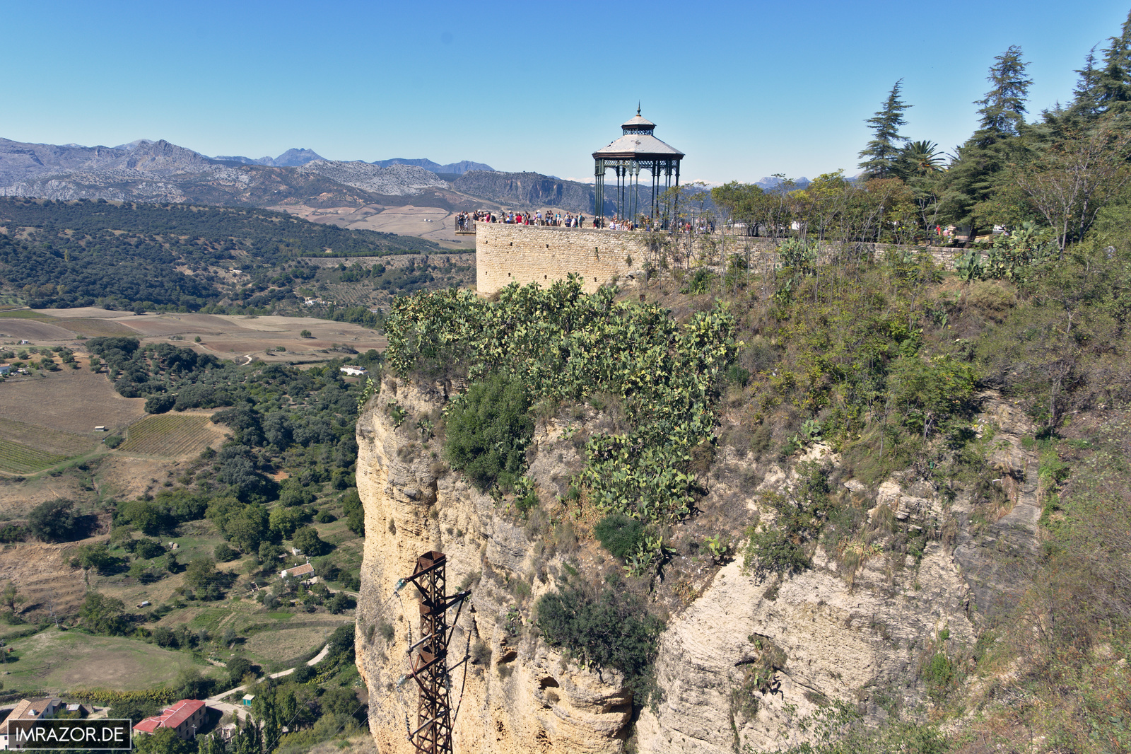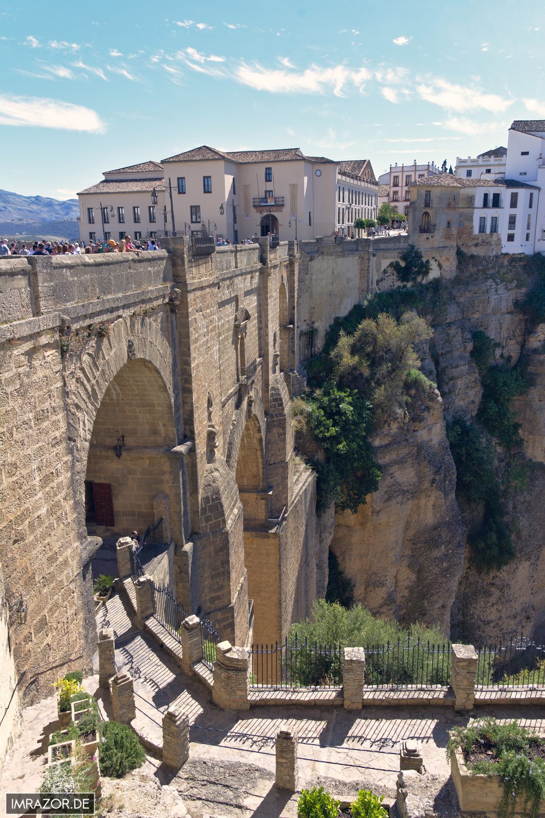 Hat man das Auto abgestellt, geht man am besten nach Südwesten, bis man die Promenade direkt am Felsvorsprung erreicht. Hier ist der Blick einfach gewaltig. Hier merkt man, wie hoch Ronda liegt und wie tief es steil hinunter geht. Spaziert man hier entlang Richtung Puente Nuevo, erreicht man bald die Stierkampfarena und die Brücke selbst. Ein architektonisches Meisterwerk. Hat man die Brücke überschritten befindet man sich in der Alstadt Rondas.