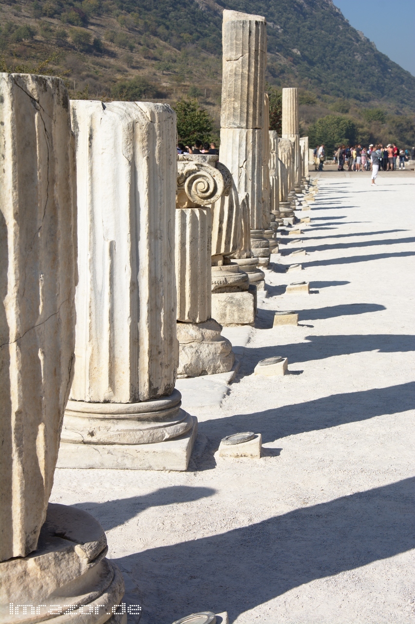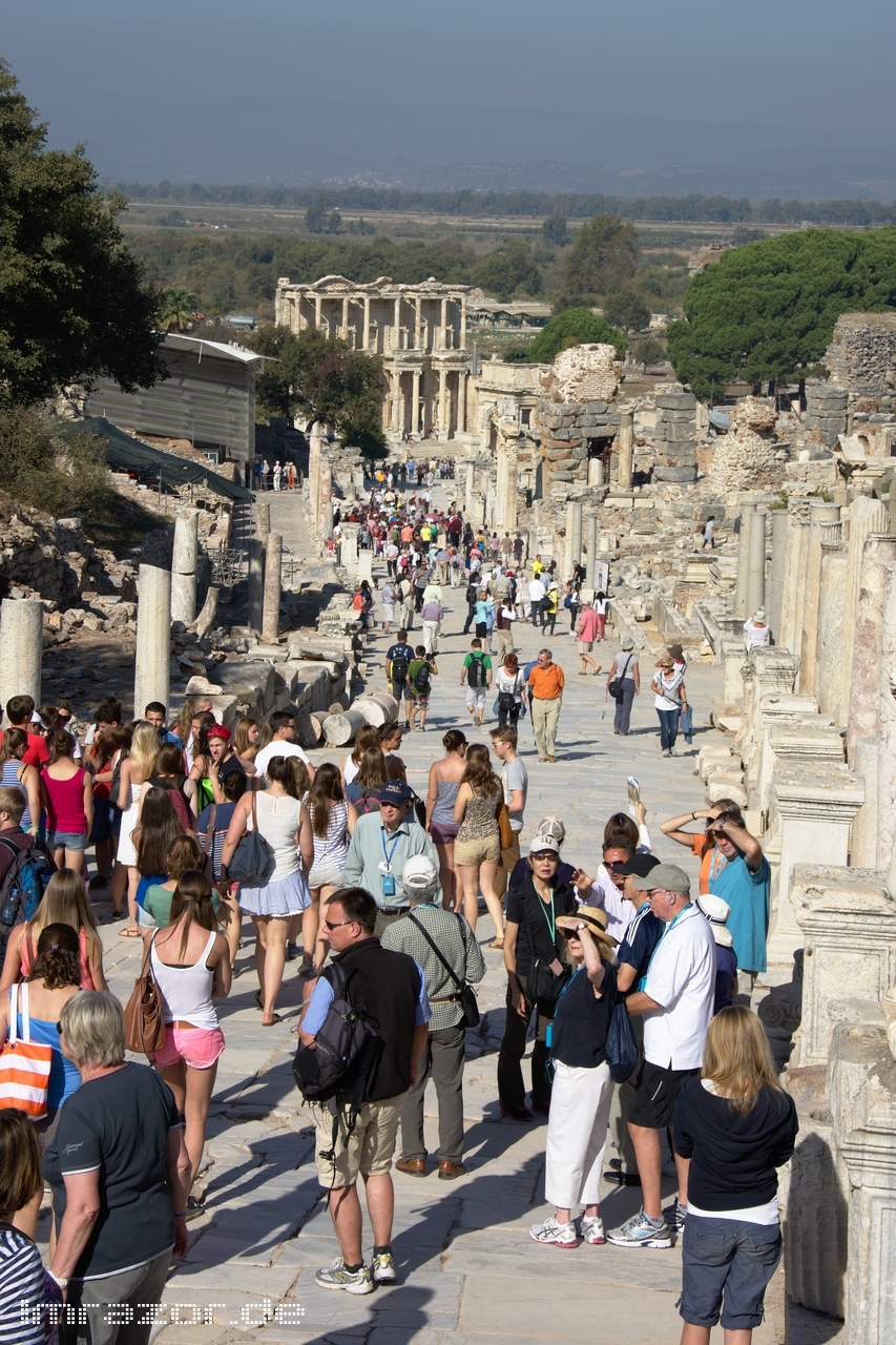 Heute ist die Ausgrabungsstätte durch die Nähe zur Küste und zur größeren Stadt Izmir ein Anziehungspunkt für Touristen. Allen voran den Schiffstoursiten, die von den Kreuzfahrtschiffen zu hunderten Ephesos „heimsuchen“. Selbst als wir in der Nachsaison dort waren, schoben sich Menschenmassen durch die antike Stadt. Kaum vorzustellen, wie es dort zur Hochsaison aussieht. Von Ephesos selbst sieht man dann wohl nur noch sehr wenig.