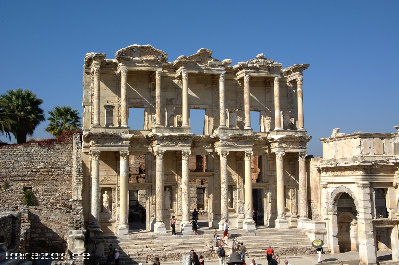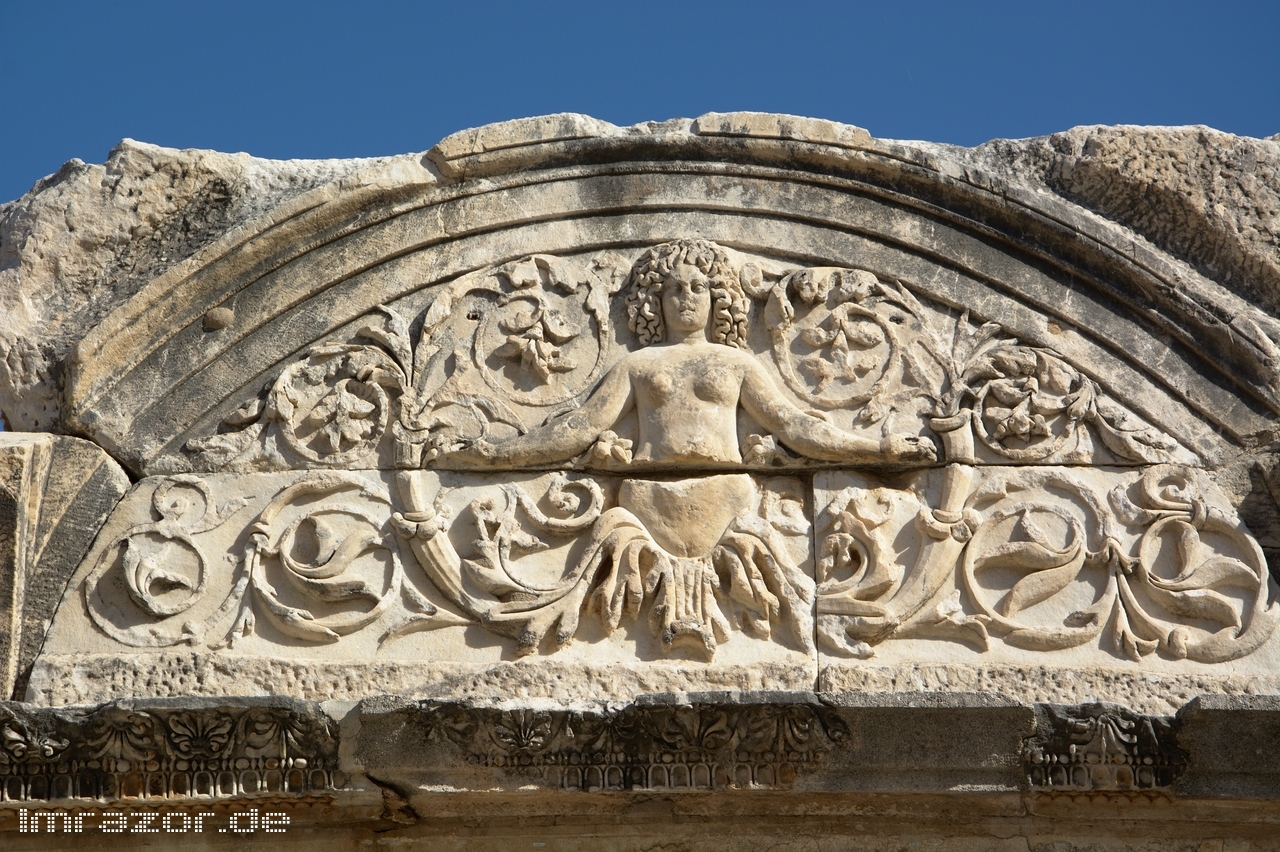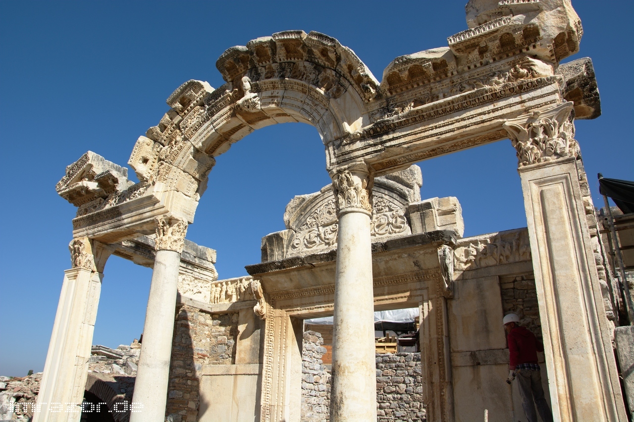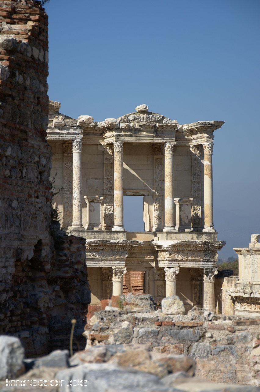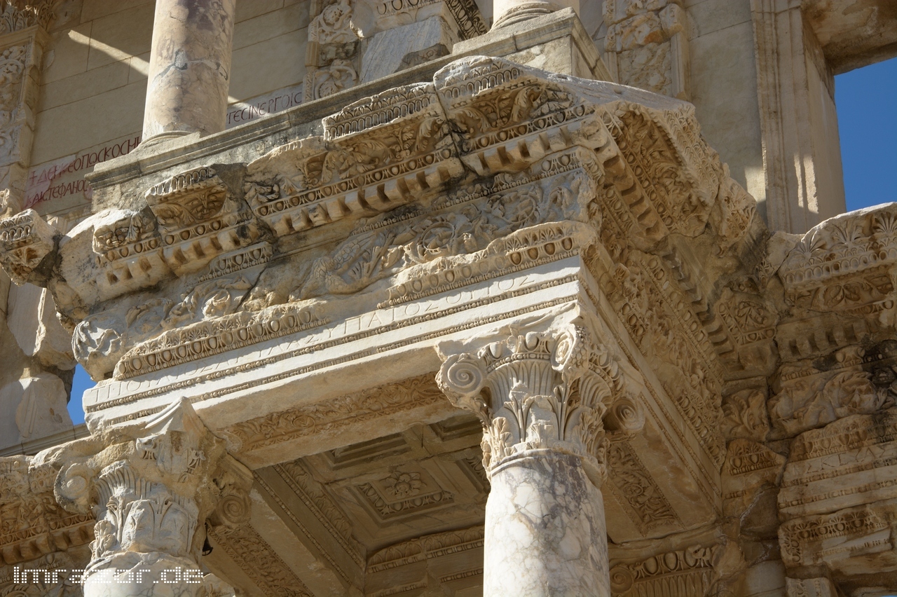 Unser Guide führte uns an den an der Hauptstraße angereihten Sehenswürdigkeiten (Odeon, Latrinen, Hadriantempel, Herkulestor) vorbei zum Höhepunkt: Die Celsus Bibliothek.