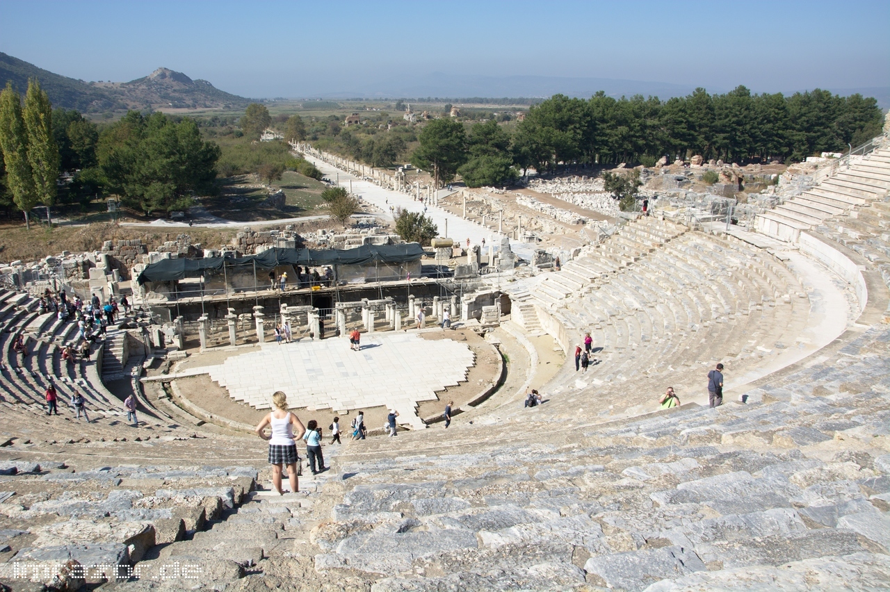 Über das große antike Theater geht es schließlich zum Ausgang. Ephesos ist eine absolute Empfehlung und äußerst sehenswert. Vielleicht nicht unbedingt in der Hauptsaison wegen der vielen Toursiten ;-)