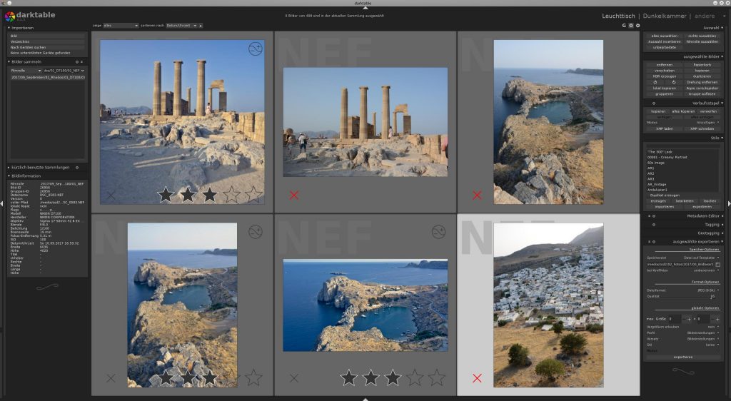 Darktable – Fotos sortieren/bewerten im Leuchttisch-Modus