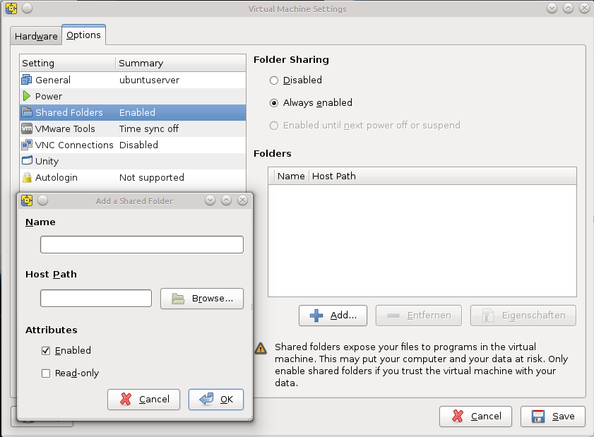 4. Netzwerkfreigabe mit dem Image innerhalb der virtuellen Maschine einhängen