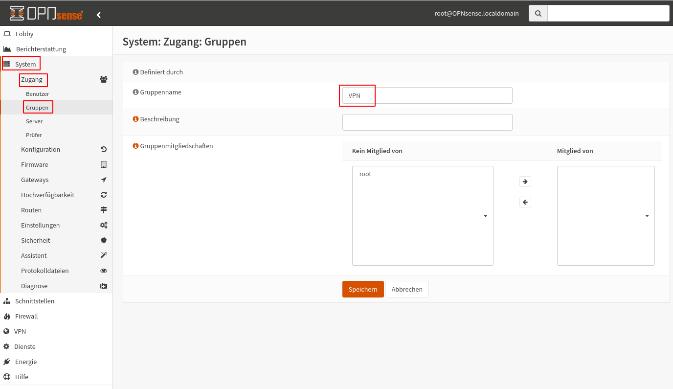 OPNsense OpenVPN: VPN Gruppe anlegen