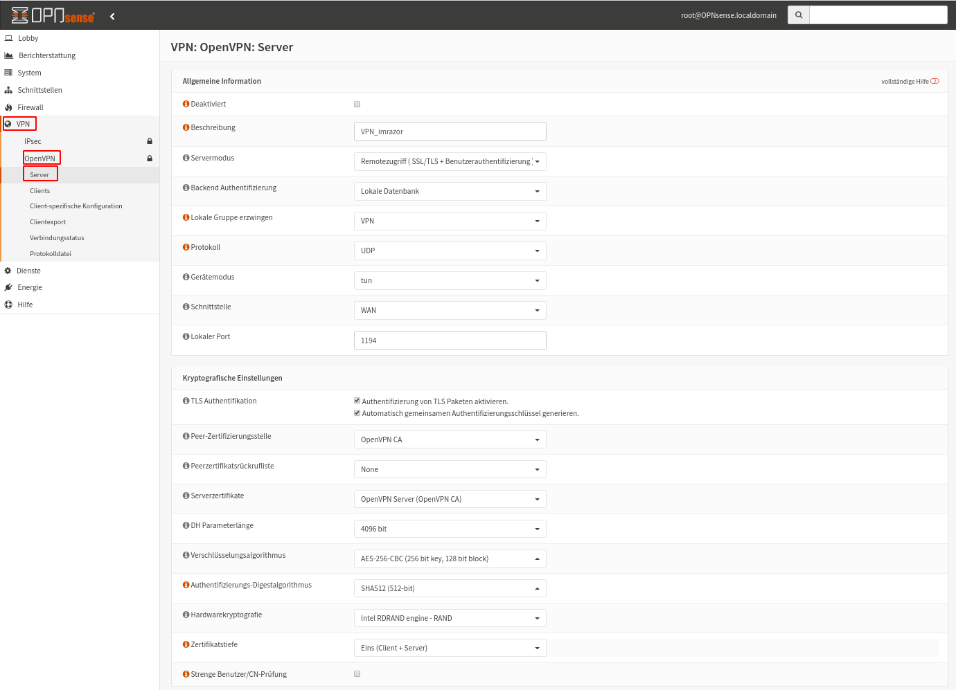 OPNsense OpenVPN: OpenVPN Server anlegen