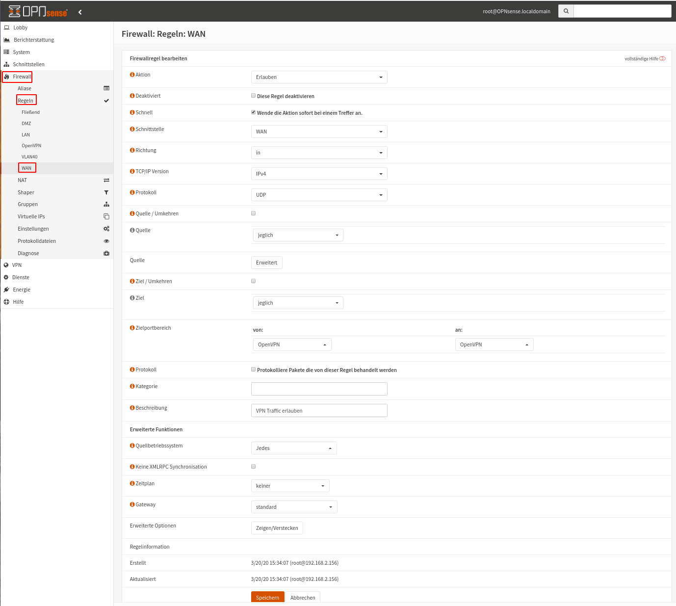 Schritt 7: Firewall-Regeln für OpenVPN