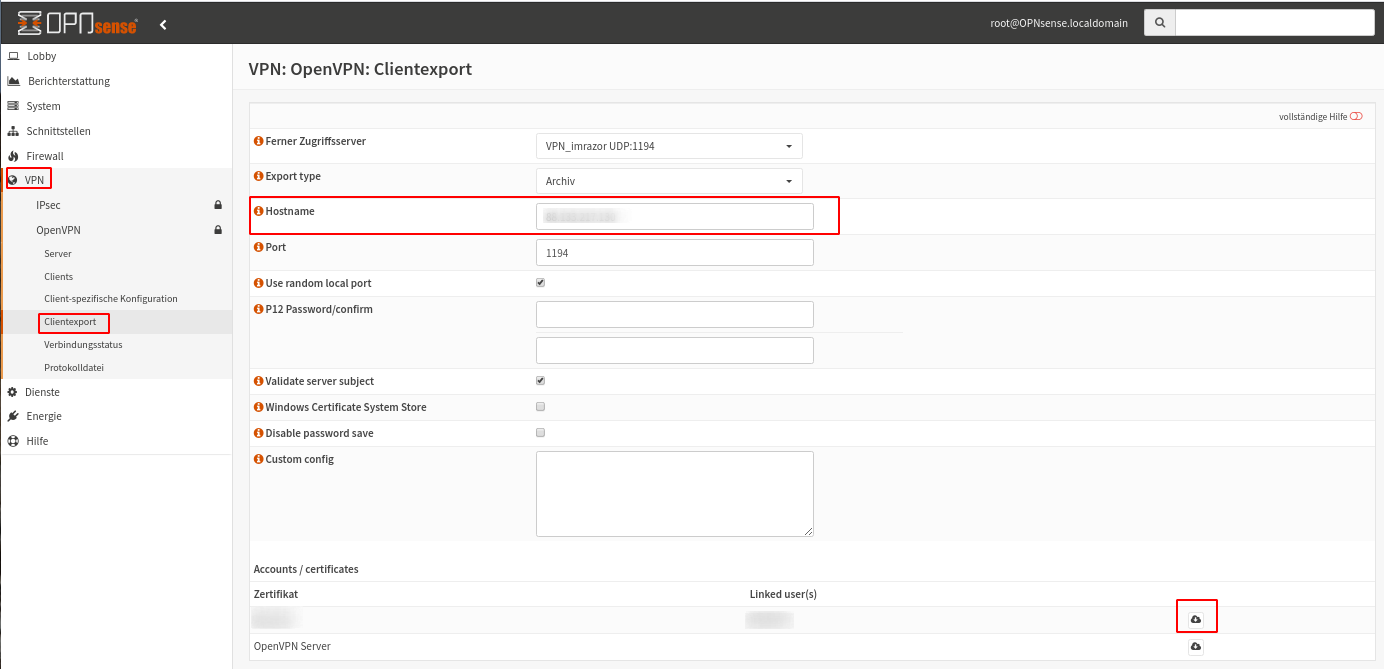 OPNsense OpenVPN: Clientexport (zum Vergrößern klicken)