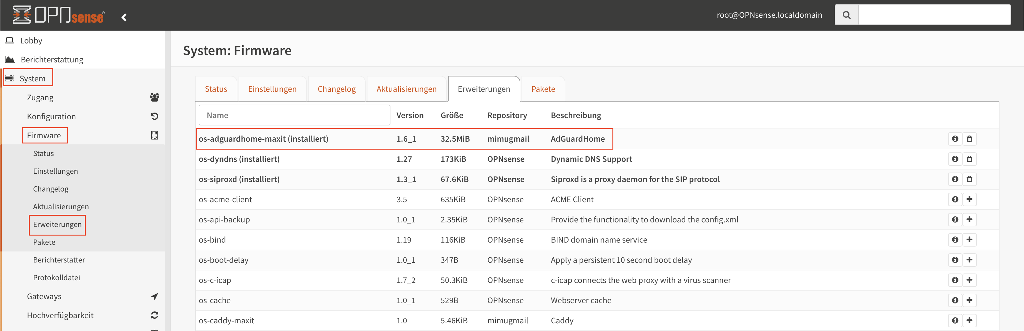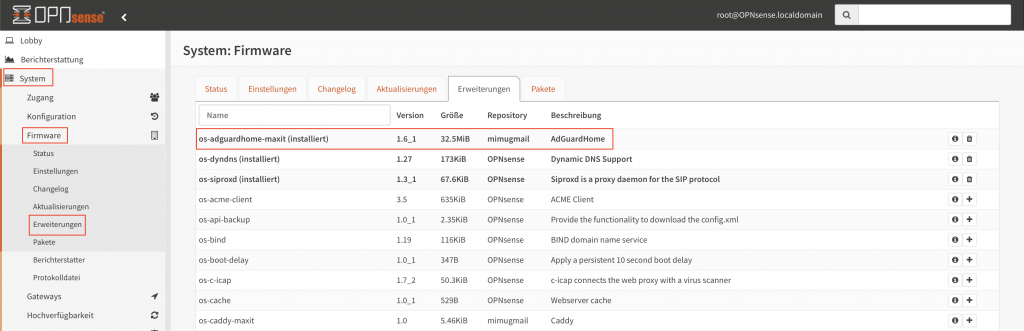 Man könnte AdGuard Home per Download und rein im Terminal auf der OPNsense installieren, einfacher ist es jedoch ein Repository zu nutzen. Besser gesagt, dass mimugmail repository.