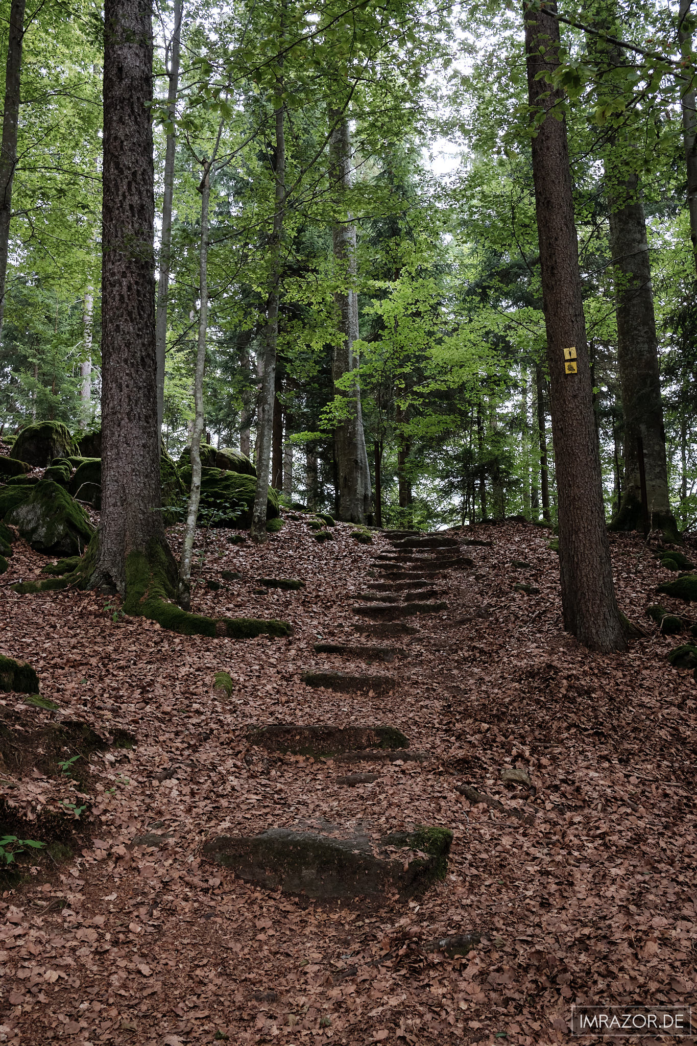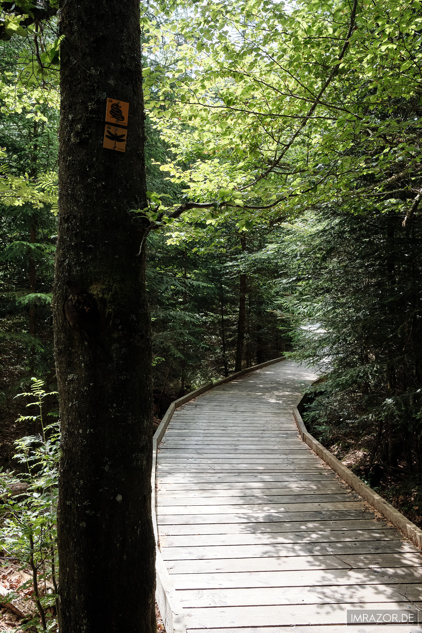 Leider blieb der große Goldfund aus, weshalb wir uns über einen weiteren Bohlenweg Richtung Wolfsgrubenfilz und Bärenloch aufmachen. Beide Namen und auch über Infotafeln erklärte Legenden, zeugen davon, dass hier vor ihrer Ausrottung Wölfe und Bären unterwegs waren. Die Wolfsgrube und das Bärenloch spielen auf Methoden an, die Bewohner anwandten, um die Tiere zu fangen.